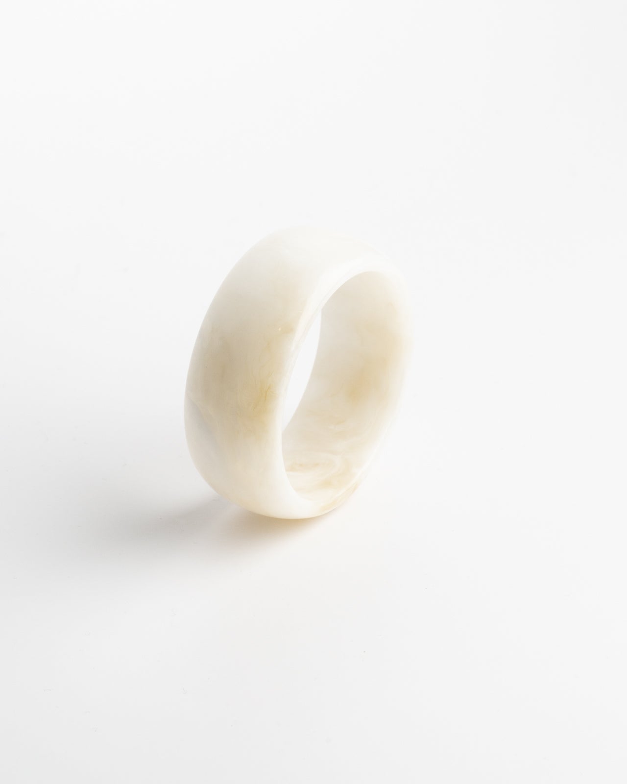 Like stone shaped by water, the Alabaster Bangle carries an organic flow, subtle swirls of ivory and warmth that feel both grounding and effortless. It’s an ode to natural beauty, imperfectly perfect and endlessly wearable.