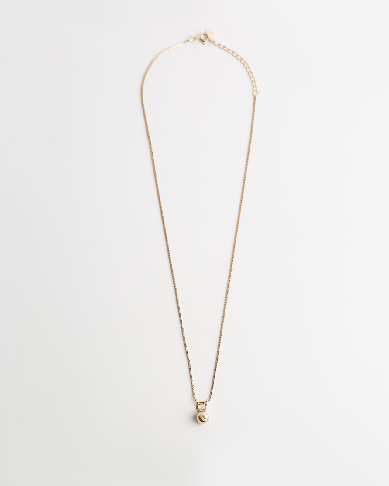 One pearl, suspended like a breath before a kiss. A delicate box chain carries it close — quiet, romantic, unforgettable. A love story in a single, shining moment.