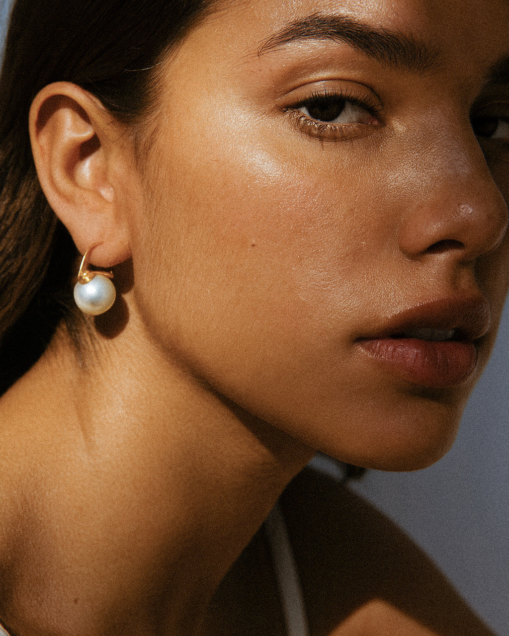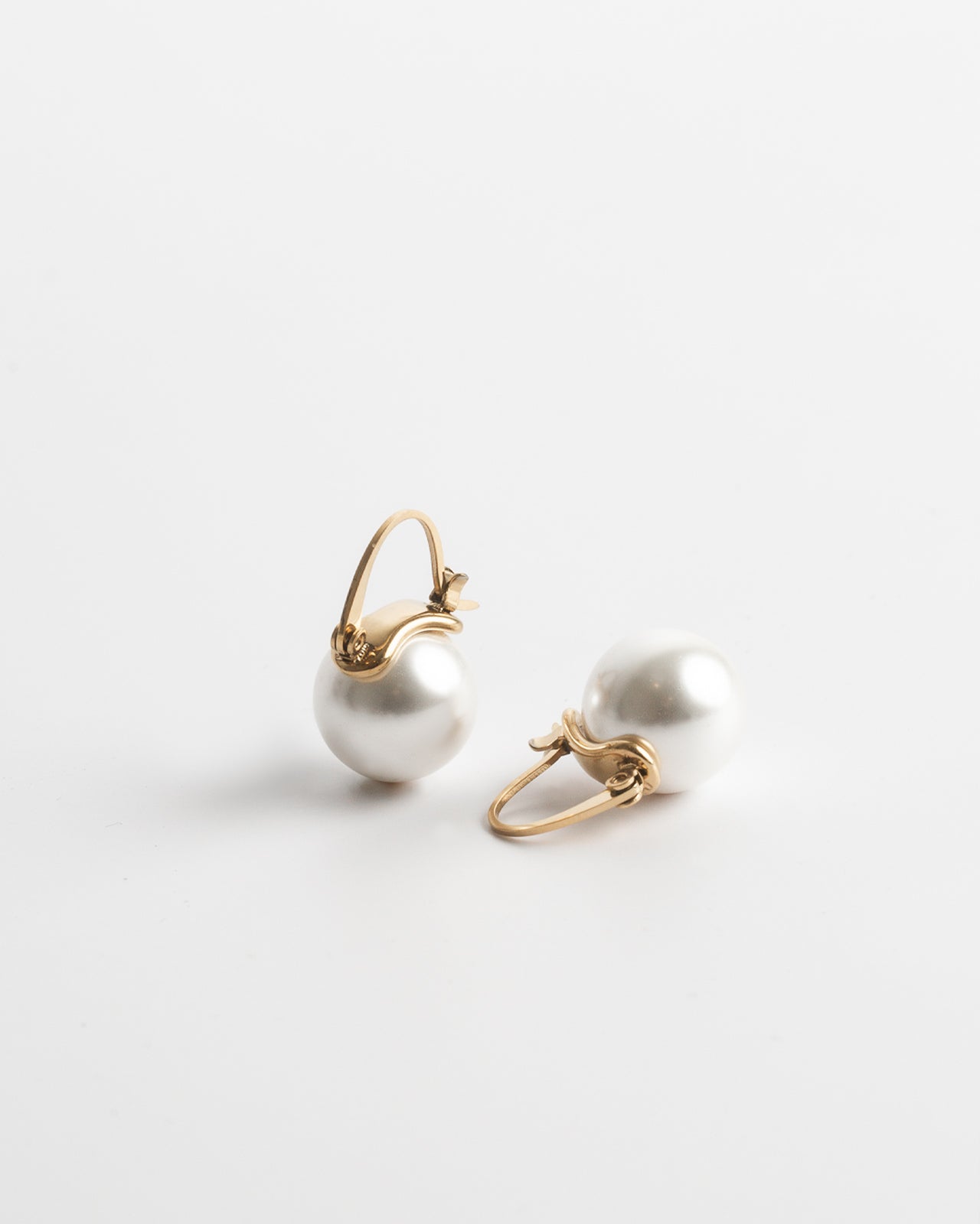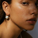 Meet the Celeste Pearl Hoop. Adorned with a large pearl nestled within a sleek hoop, this exquisite piece is both gorgeous and unique, making it a perfect choice for any occasion.