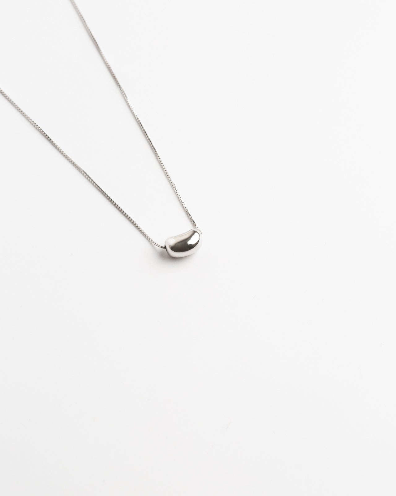 Crafted in luminous gold vermeil, this necklace features a delicate chain that gracefully drapes the neckline, culminating in a captivating bean shaped pendant.