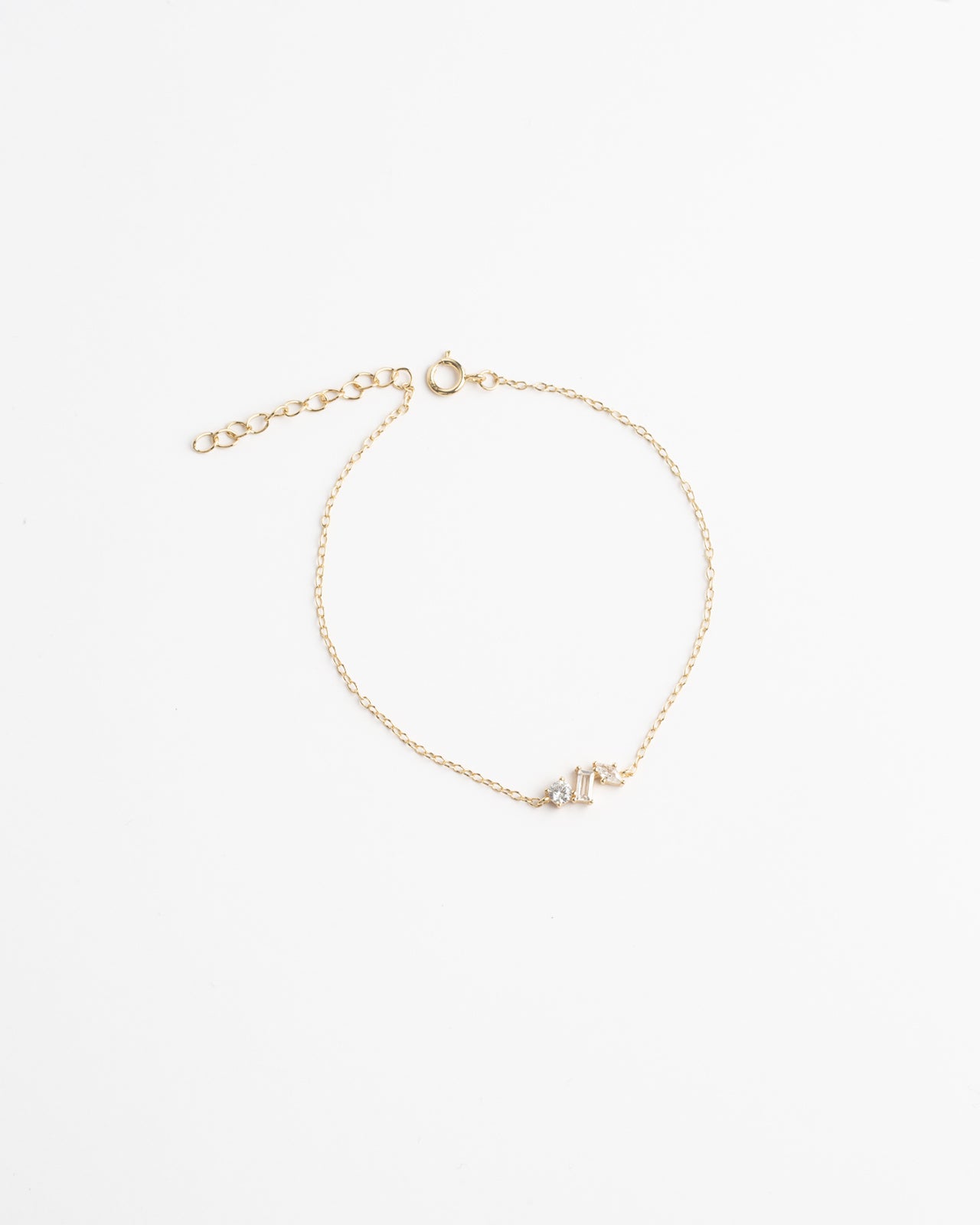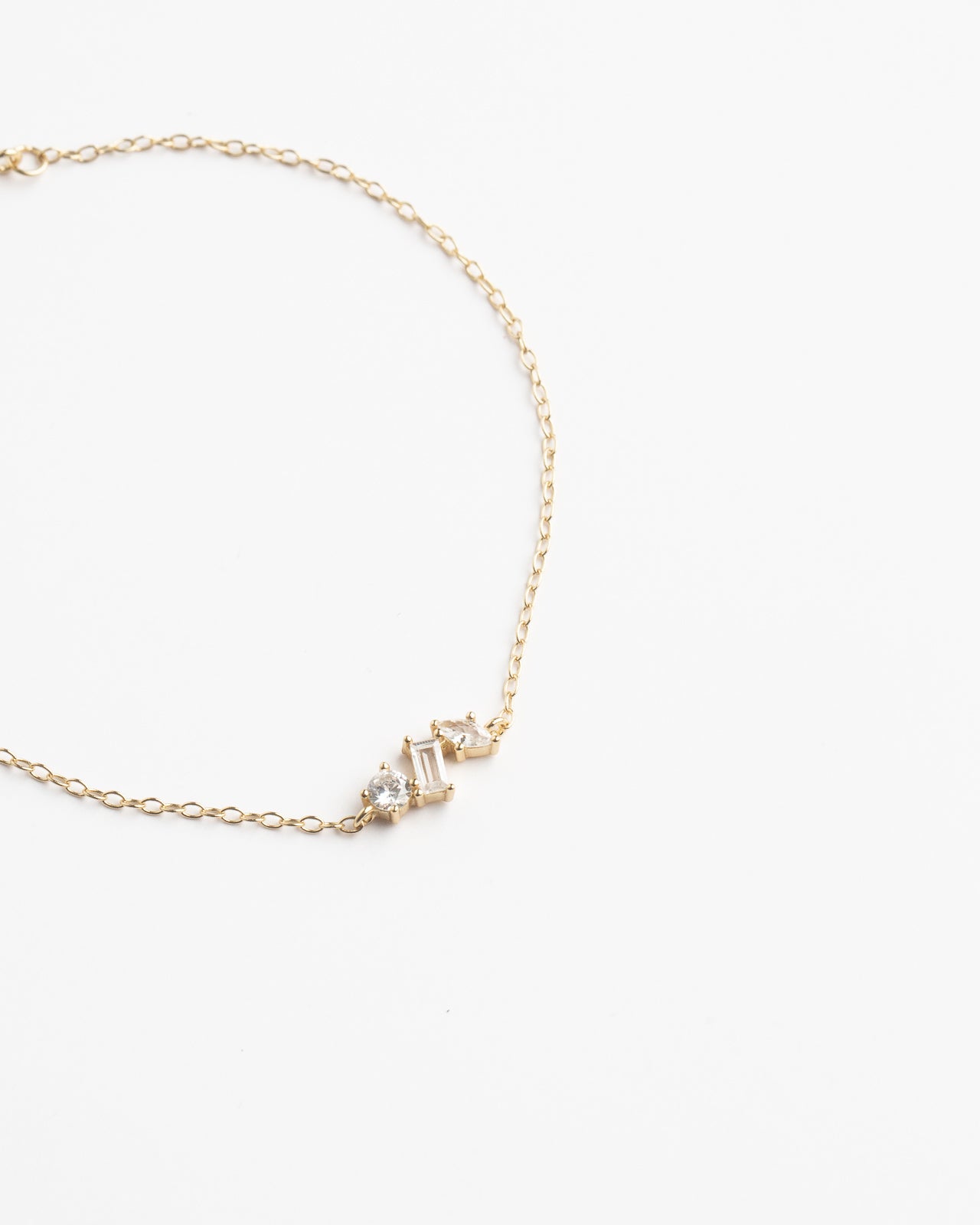 Inspired by ancient craftsmanship, the Evora Bracelet features a delicate gold chain with three sparkling geometric stones. Each stone catches the light, reflecting the wearer’s timeless elegance and bold beauty. A simple yet captivating piece of magic.