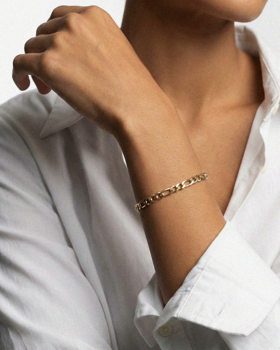 Figaro Petite is our slim take on the iconic Figaro chain. Lightweight, understated, and made for everyday wear. Easy alone, effortless in a stack, and timeless in gold.