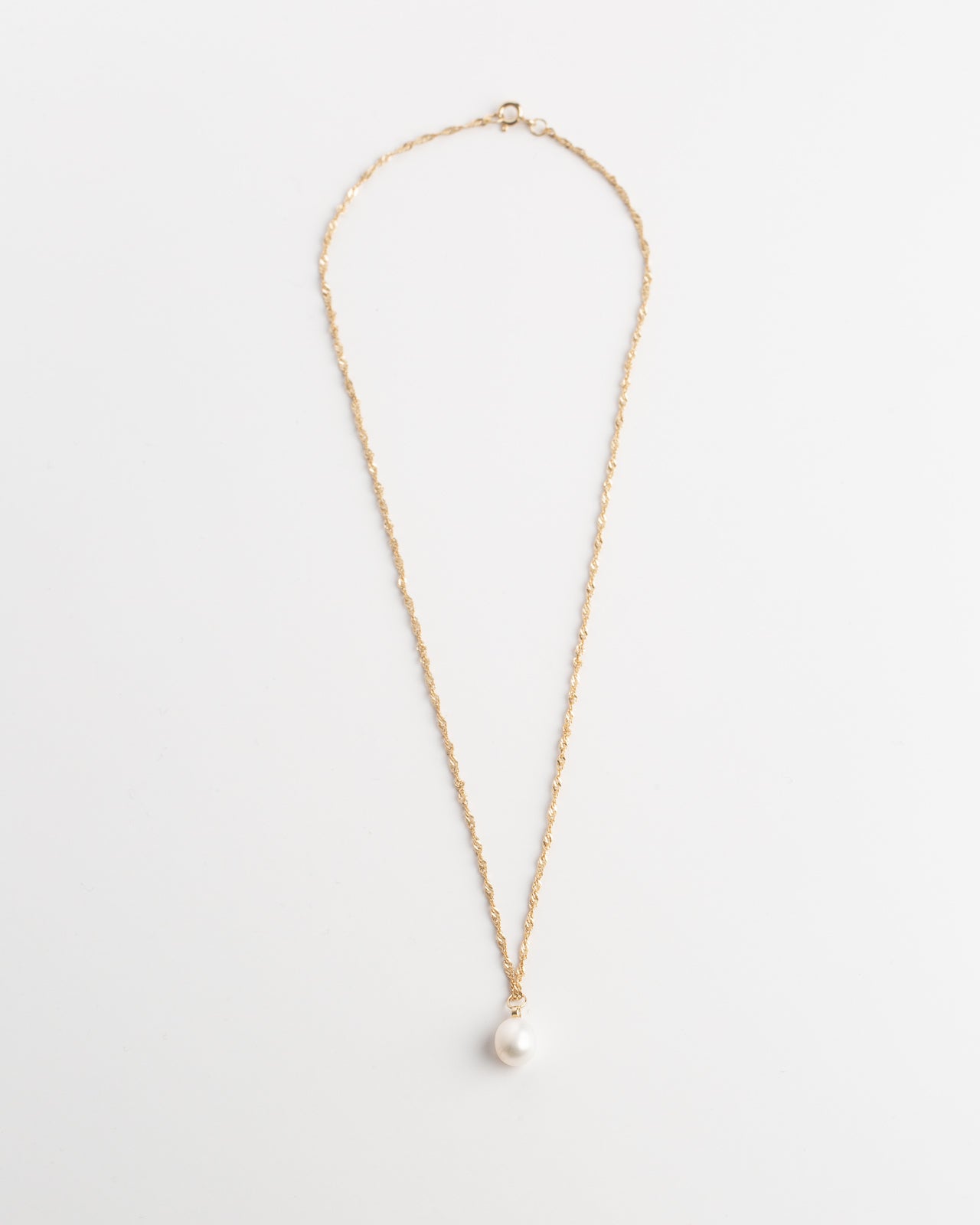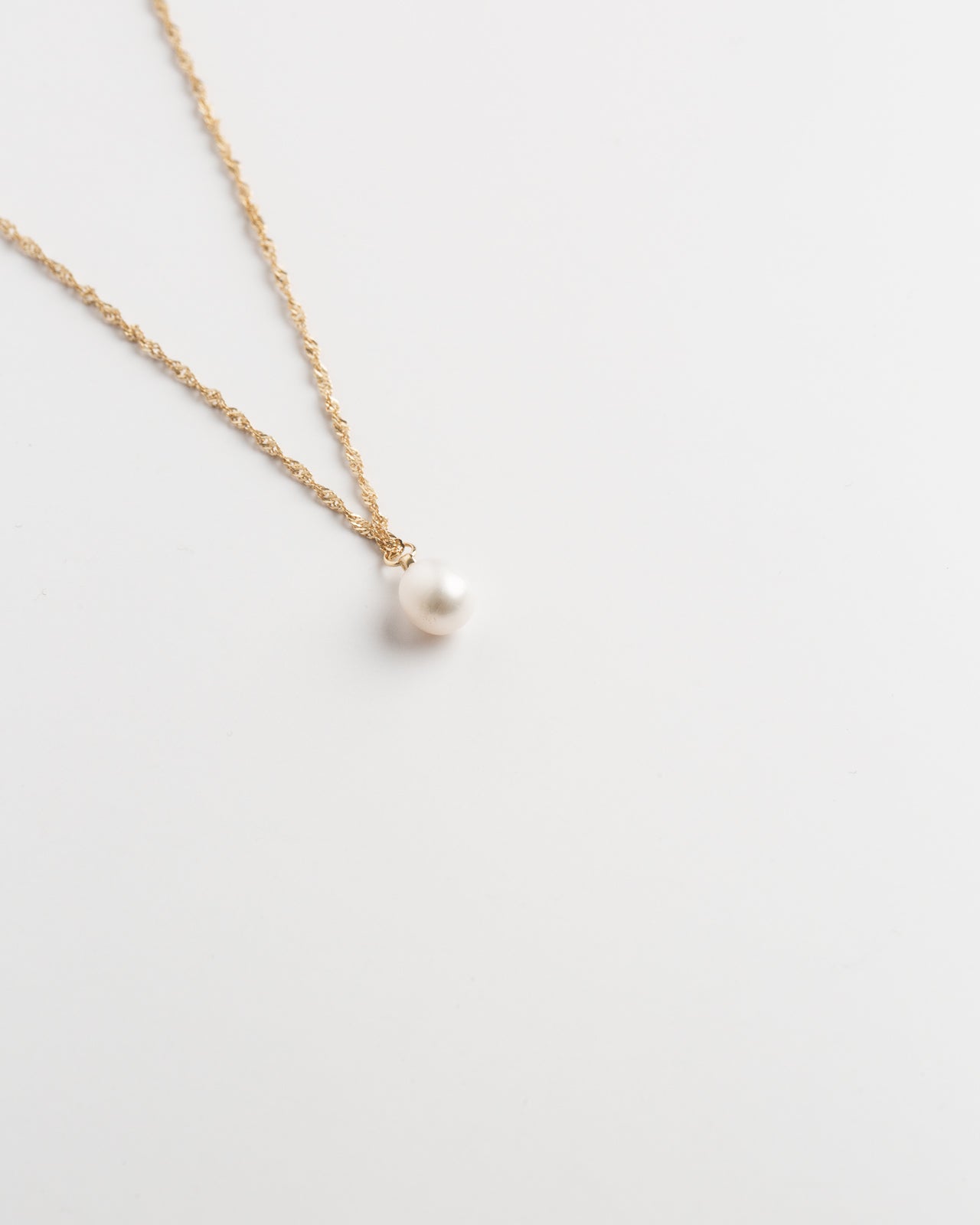 A single pearl, kissed by a hint of sparkle, drapes from a golden rope chain that winds like intertwined destinies — timeless, romantic, and meant to be treasured.