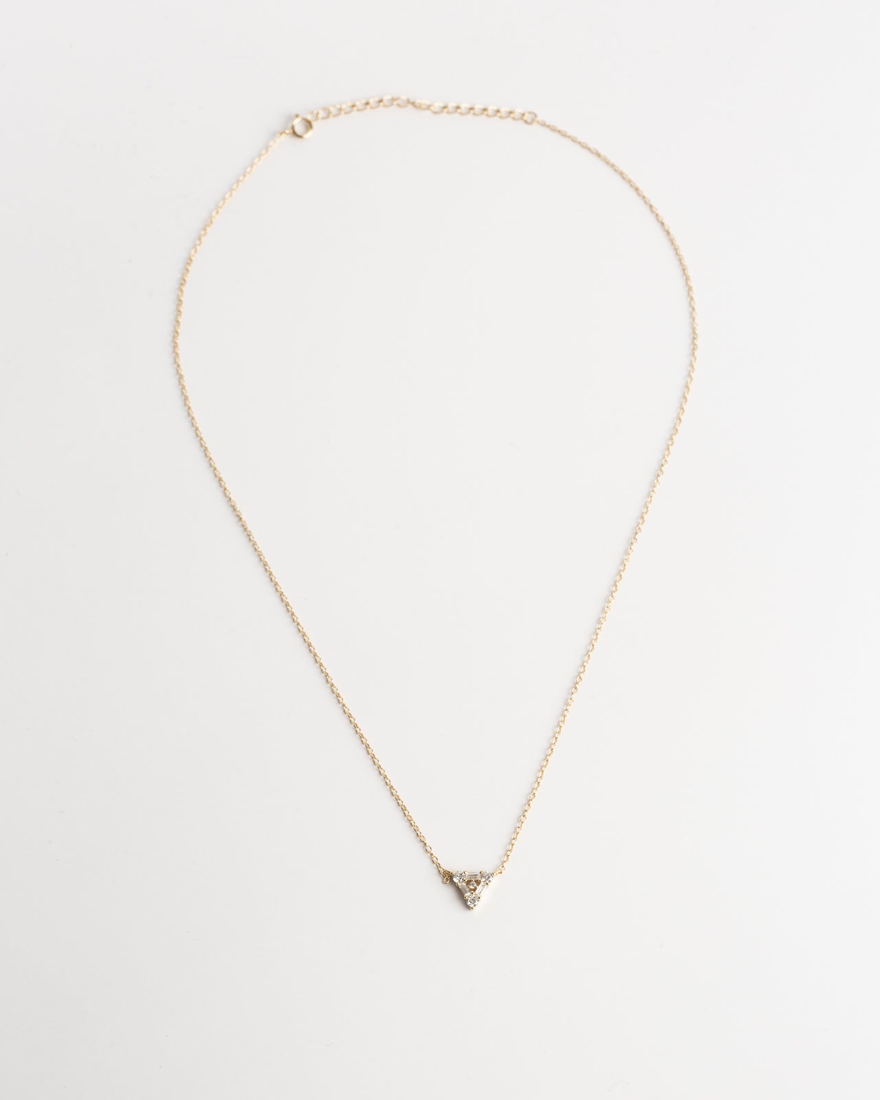A truly unique and exquisite piece. Crafted with a delicate gold vermeil chain, this necklace features a captivating triangle-shaped diamond pendant, adding a touch of sophistication to your collection.